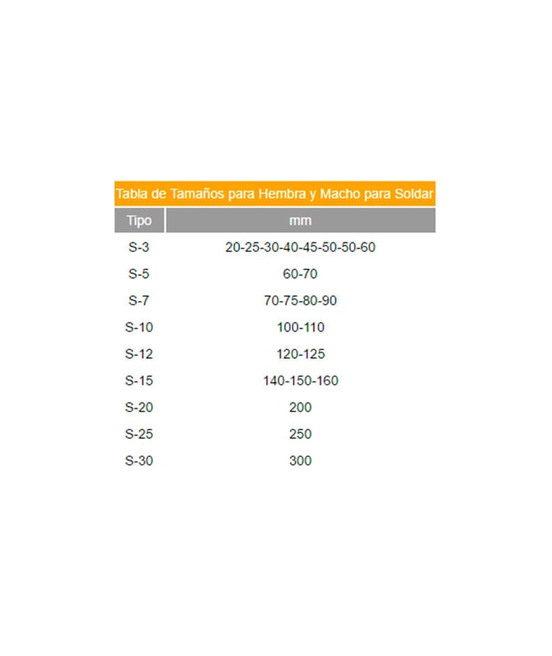Enlace fabricado totalmente en inoxidable (También disponibles en acero para su uso industrial no alimentario), muy introducido en el mundo de las bodegas para trasvase del vino. Es utilizado para la manipulación de cualquier sólido o liquido, que pueda ser abrasivo, corrosivo o para uso alimentario. La sencillez en el montaje hacen que sea una pieza muy útil en cualquier campo o aplicación en el trasvase de fluidos. MEDIDAS: -Desde ø20 hasta ø160 -Desde rosca 1/2 hasta rosca de 6 PRESIONES: -De 9 a 20 BAR. ANGULO ORIENTACIÓN: ± 30º CARACTERÍSTICAS: -Las hembras siempre incluyen la junta -Los machos siempre incluyen el aro -Material en Aisi 304L -Podemos suministrar todas las piezas en Aisi 316 -Las piezas cuyas dimensiones figuran en el mismo recuadro pueden montarse entre sí. -Las medidas de los tubos para la manguera son en milímetros -Las medidas de las roscas son en pulgadas gas -Podemos suministrar juntas tóricas para el trasvase de cualquier producto CAMPOS DE APLICACIÓN: -Cualquier producto alimenticio. (vino,zumo,aceitunas,salmueras,etc...) -Contrucción: hormigón, mortero, cerámica, porcelana, etc... -Minería -Piscifactorías. -Petroquímicas. -Industrias en general.